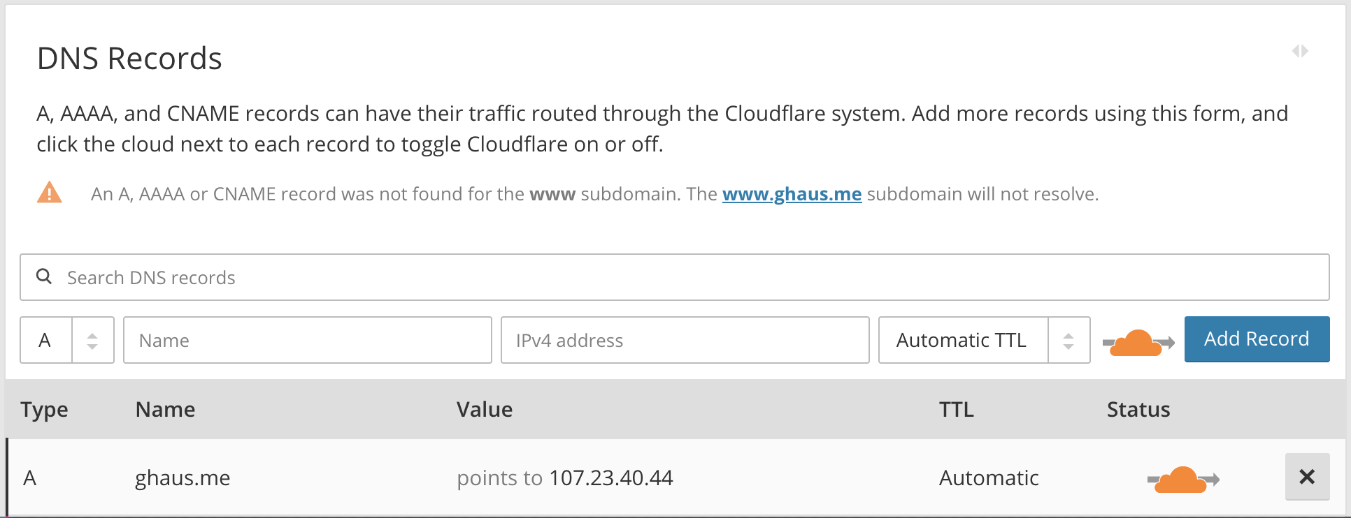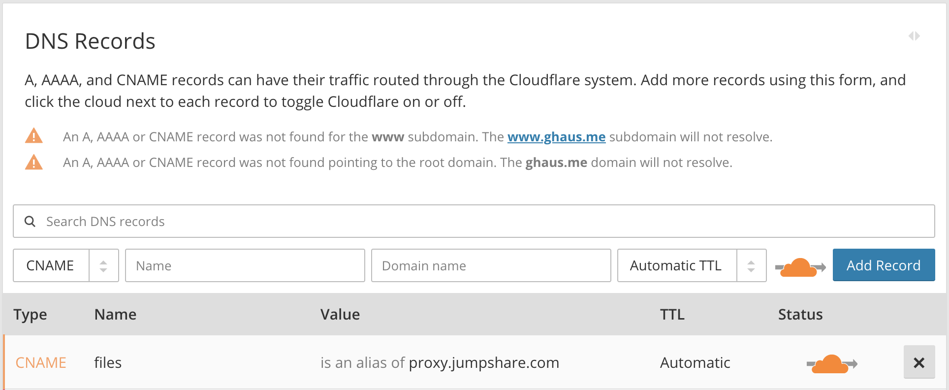 An example of CNAME record fetched by Cloudflare