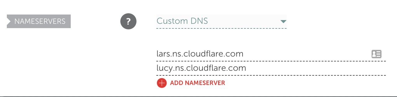 Cloudflare nameservers entered in domain registrar Namecheap.com