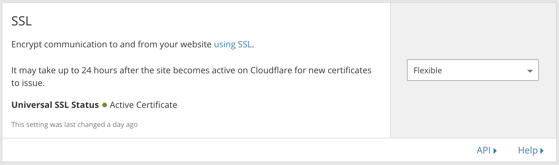 In Cloudflare dashboard, head to the Crypto tab and select “Flexible” SSL certificate. If Flexible doesn’t work, you can try “Full” SSL Certificate.