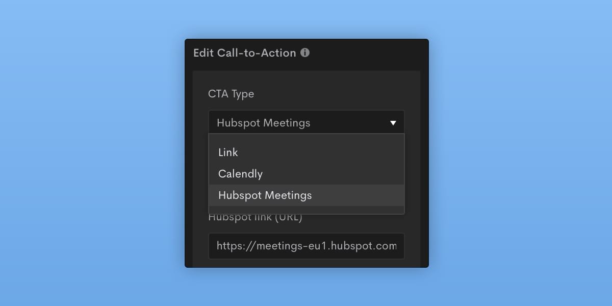 When a viewer clicks on a HubSpot or Calendly CTA button, a pop-up opens over the video, allowing them to request or sign up for a meeting in a few clicks. The idea is to simplify the process of setting up a face-to-face session with colleagues or clients. Spend less time scheduling appointments and more time communicating!