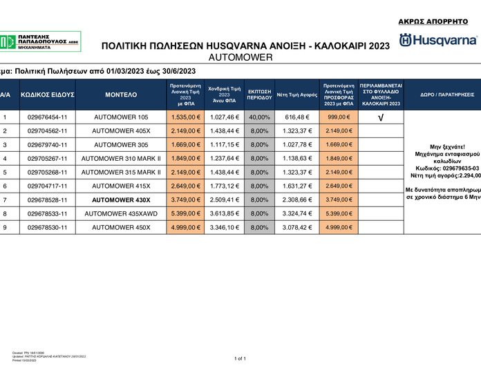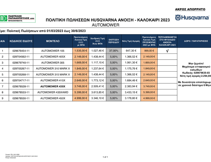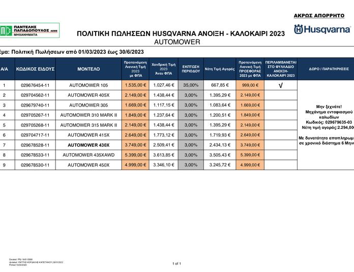 Εμπορική Πολιτική Husqvarna Automower